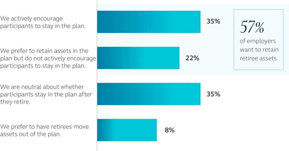 22% prefer to retain assets in the plan but do not actively encourage participants to stay in the plan.
