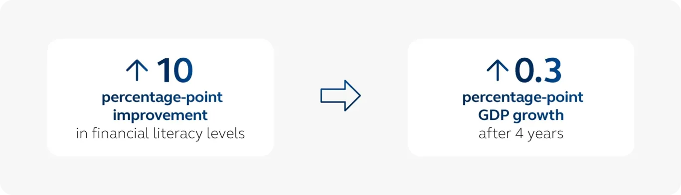 The economic benefits extend beyond individual households. The research indicates that a 10-percentage-point improvement in financial literacy levels could generate a 0.3-percentage-point improvement in GDP growth over a four-year period, above the expected baseline growth rate